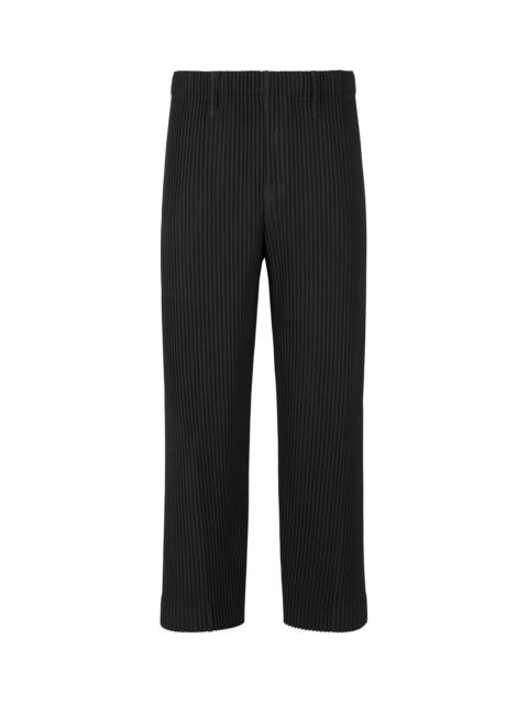 These thick straight pants have a simple design. They have pockets on both sides and belt loops at the waist. They have a button-fly design.