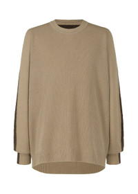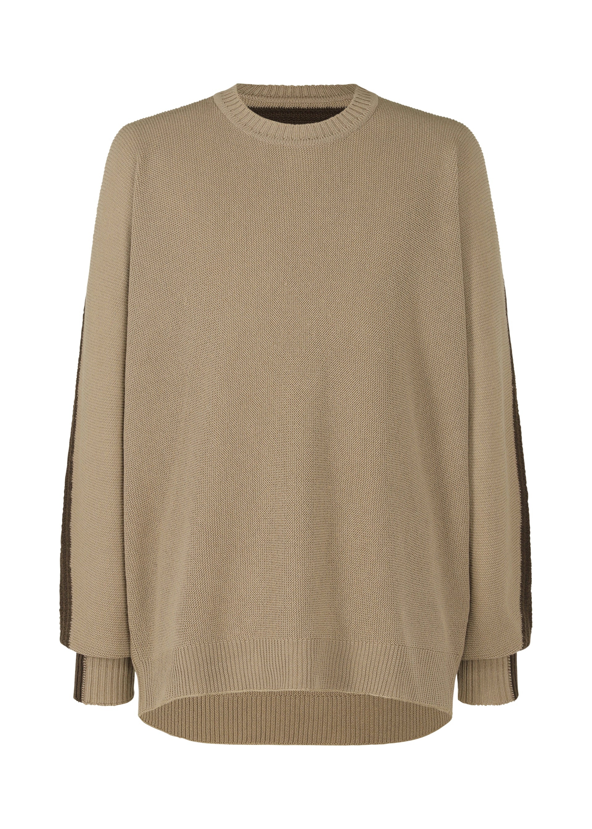 This three-dimensional round-neck knit features lines drawn across the knitted fabric. The lines of designer/artist Ronan Bouroullec's drawings are boldly expressed by alternating the stitches and color scheme. The knit is characterized by its relaxed silhouette. Product Information Material: 100% wool Country of origin: Japan neckline/collar:round neck