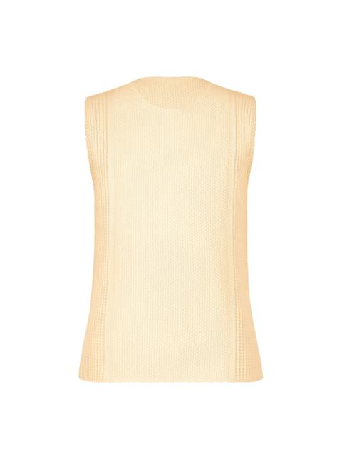 This round-neck knit vest is made from organic cotton with a refreshing texture. It is characterized by its relaxed silhouette with volume at the back. It has slits on both sides. Product Information Material: 100% cotton Country of origin: Japan neckline/collar:round neck Slit (position):both sides