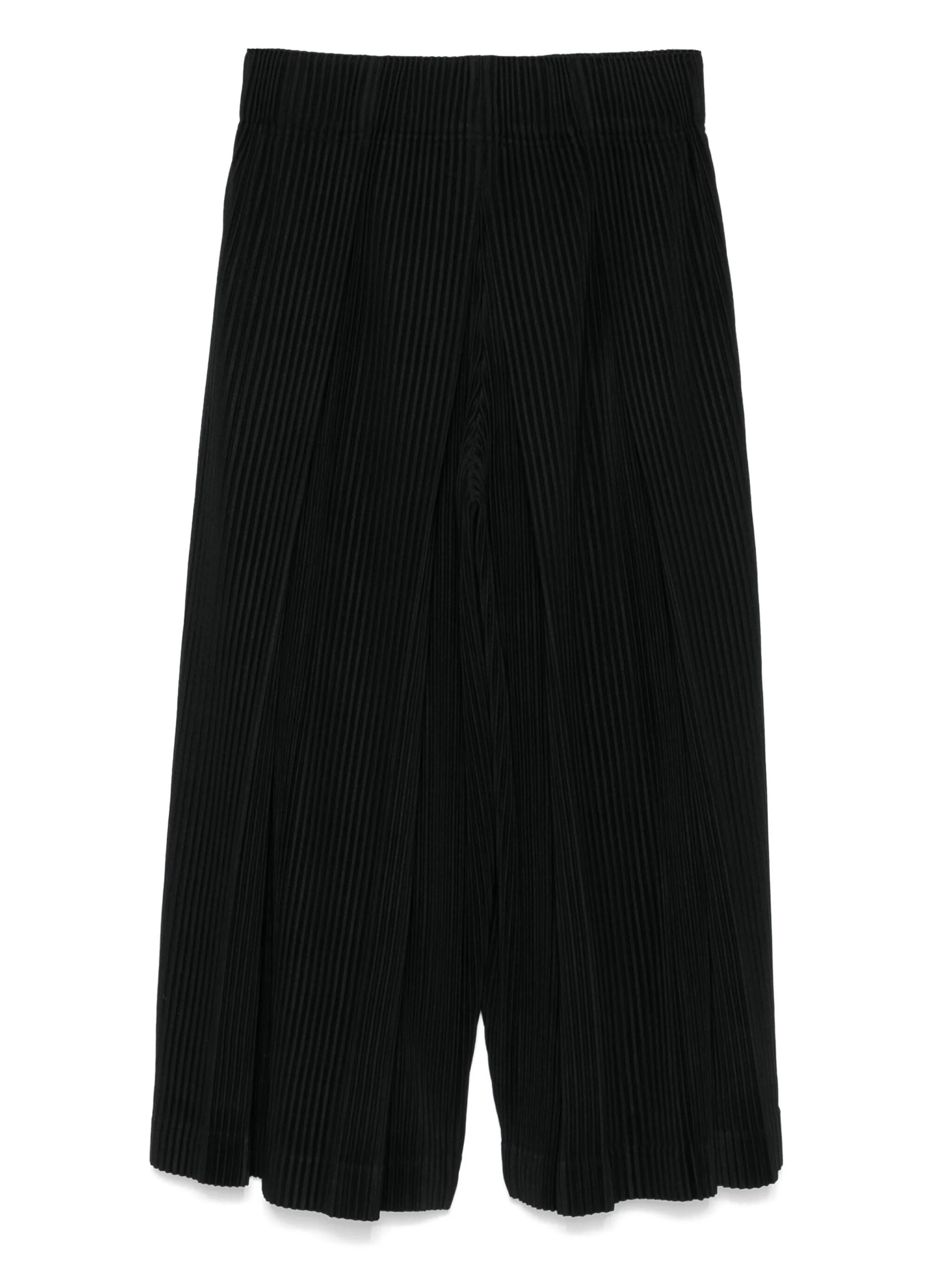 Tucked Pants - Black from Issey Miyake Homme Plisse Highlights - black - wide fit - fully pleated - elastic waistband with internal drawstring - pockets - cropped leg Made in Philippines Designer ID: HP48JF363 Color ID: 15 Black Materials 100% POLYESTER Machine wash cold, gentle cycle. Non-chlorine bleach, only if necessary. Do not tumble dry. Line dry in the shade. Do not iron. Do not dry clean.
