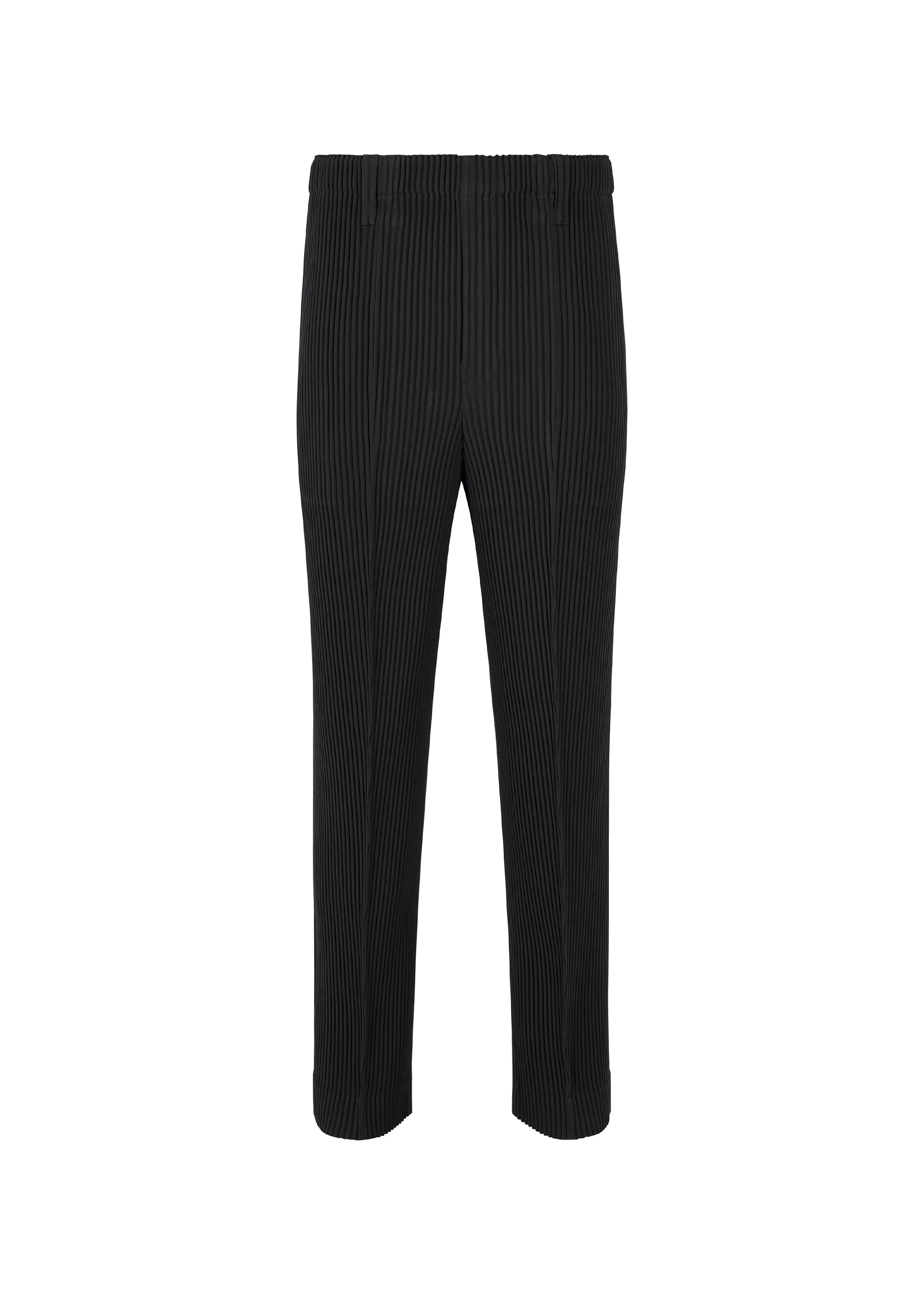 These pants with center tucks have a luxurious feel suitable even for formal occasions. They are made from material that is more flowy than conventional pleated materials. They have pockets on both sides and belt loops at the waist. They have a buttoned front opening. Product Information Material: 100% Polyester Made In The Philippines Waist specifications:Elastic / belt loop Front opening specification:Button fly Pocket (position):Both sides