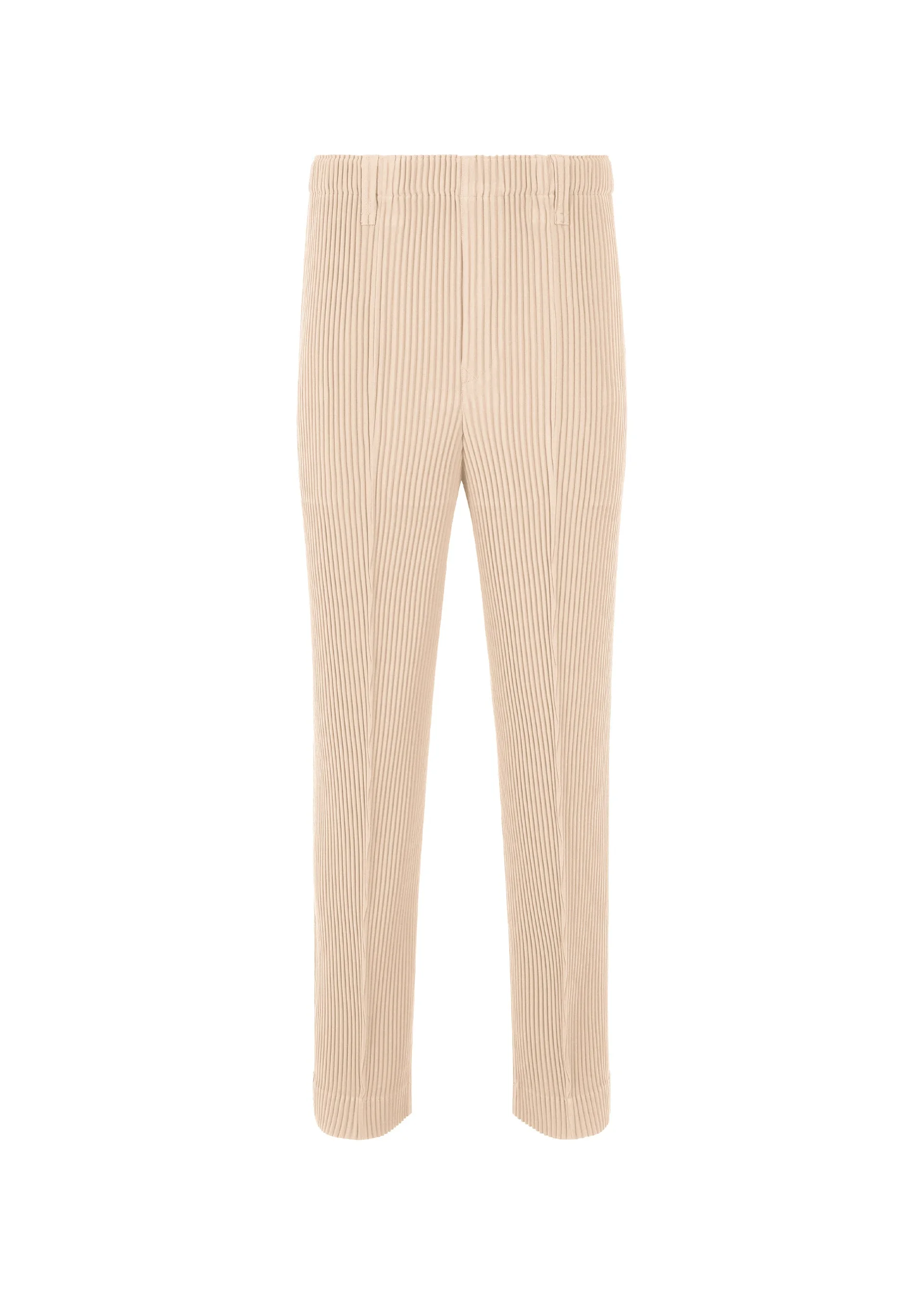 These pants with center tucks have a luxurious feel suitable even for formal occasions. They are made from material that is more flowy than conventional pleated materials. They have pockets on both sides and belt loops at the waist. They have a buttoned front opening. Product Information Material: 100% Polyester Made In The Philippines Waist specifications:Elastic / belt loop Front opening specification:Button fly Pocket (position):Both sides