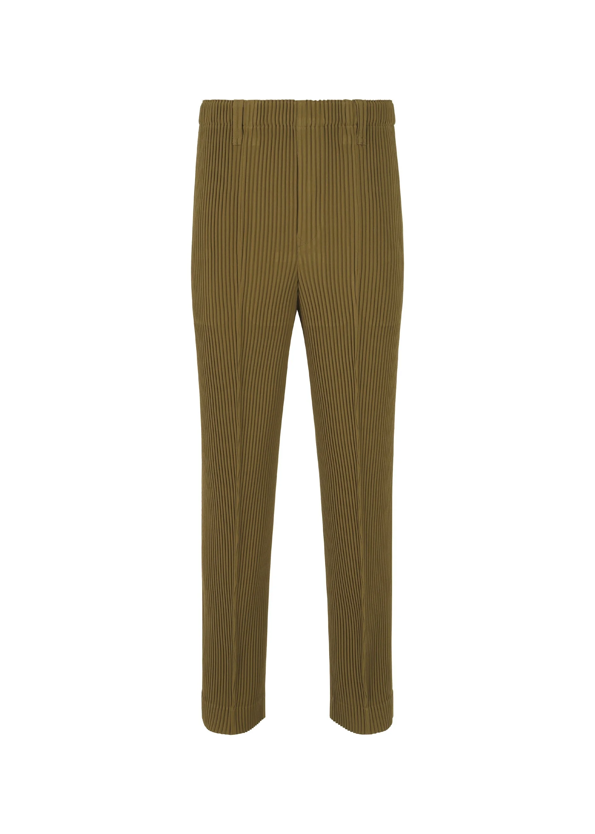 These pants with center tucks have a luxurious feel suitable even for formal occasions. They are made from material that is more flowy than conventional pleated materials. They have pockets on both sides and belt loops at the waist. They have a buttoned front opening. Product Information Material: 100% Polyester Made In The Philippines Waist specifications:Elastic / belt loop Front opening specification:Button fly Pocket (position):Both sides