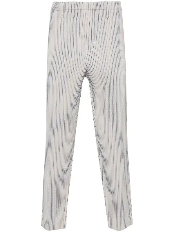 Tweed Pleats Pants in Grey/Black/Blue from Issey Miyake Homme Plisse Highlights - grey, black, blue - fully pleated - elastic waist - side pockets - straight hem Made in Philippines Composition: 100% Polyester Designer ID: HP38FF323 Color ID: 41