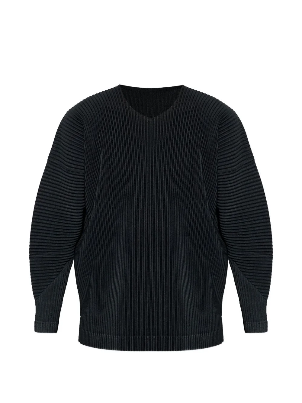 V-neck pleated T-shirt Highlights - Black - Pleated design - V-neck - Long sleeves - Straight hem Imported Composition Polyester 100% Washing instructions Read Manufacturer Guidelines