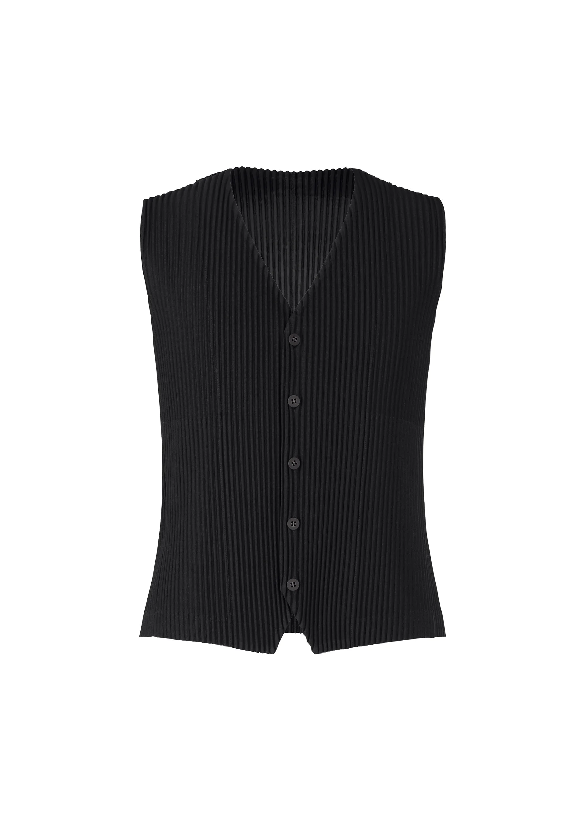 An open-front vest that dries quickly, which is unique to polyester material, and is portable and lightweight. Product Information Material: 100% Polyester Lining: 100% Polyester Neckline/Collar:V-Neck Front Opening:Button Pocket (Position):Both Sides