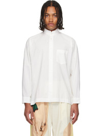 Semi-sheer crinkled organic cotton poplin shirt. · Band collar · Button closure · Patch pocket at chest · Vented side seams · Buttoned barrel cuffs · Box pleat at back yoke Supplier color: White 100% organic cotton. Made in Philippines 252729M192011