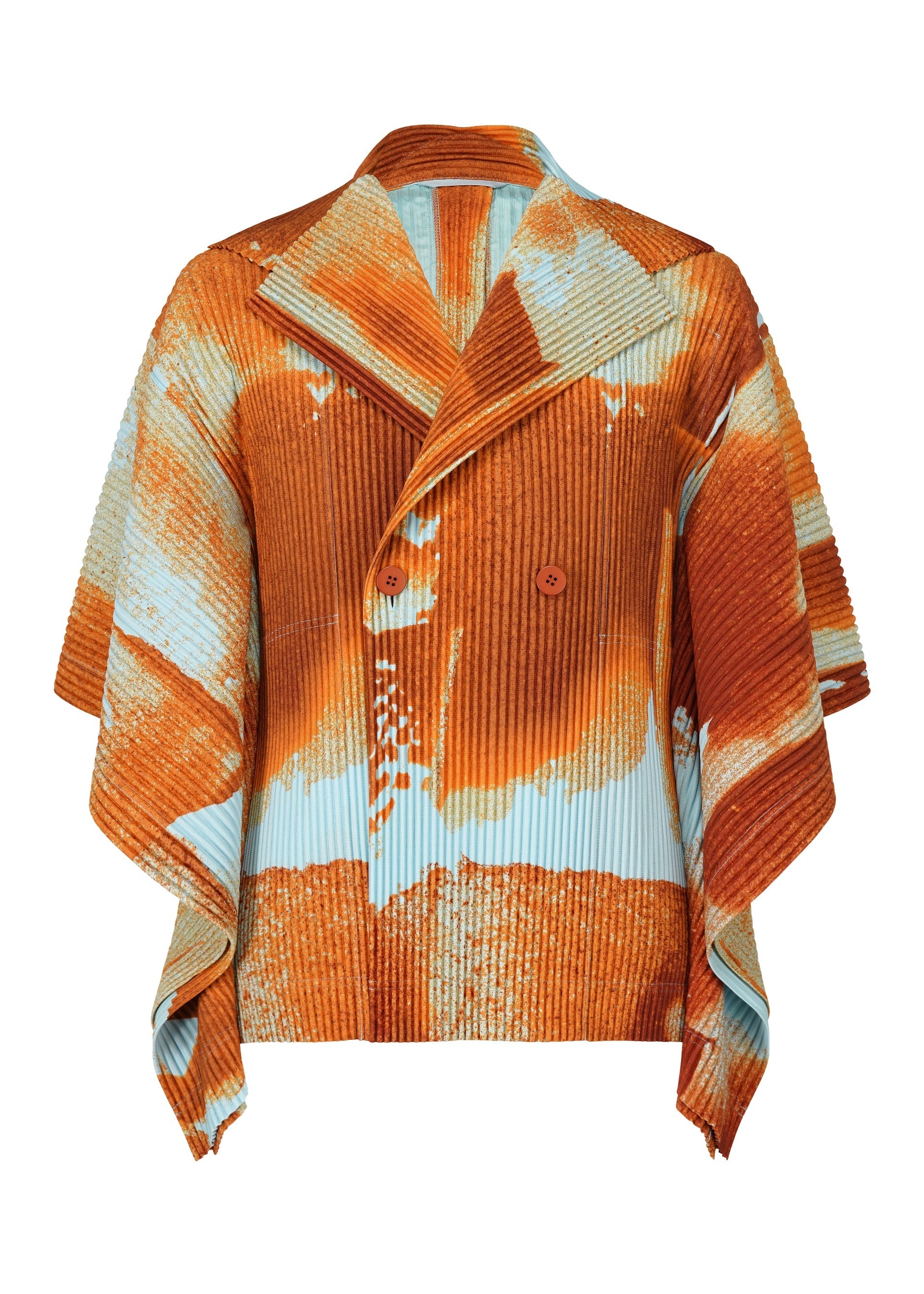 A blouson with a print that expresses the wind pattern created by natural movement without regularity. I created a pattern by blowing powdered colored pastels in the wind. There are pockets on both sides and a center vent on the back. The pattern of this product is different one by one. Thank you for your understanding in advance. Product Information Material: 100% polyester Lining: 100% polyester Country of origin: Philippines Front opening:button Pocket (position):both sides Vent (position):center vent others:collar hanging