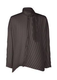 This long-sleeved shirt expresses the look of things fluttering in the wind with its series of curved handmade pleats applied to a simple pattern. The front slit is designed to allow the tie part to pass through, giving the impression of air flowing through. There are also slits on both sides. Due to the nature of the material, this product may have horizontal creases on the curved lines of the pleats. Please note this in advance. Product Information Material: 90% polyester, 10% wool Country of origin: Philippines Front opening:button Slit (position):both sides