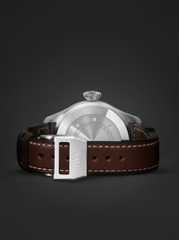Early 'observation watches' from the 1930s were simple in that they packed three hands against a dark dial inside a large case, which naturally made for great legibility. IWC SCHAFFHAUSEN's latest 'Big Pilot's' model stays true to those of yesteryear but scales down the original 55mm proportions to 46.2mm. Made from stainless steel with a 'Racing Green' face, it employs an in-house automatic 52110 calibre and stores an impressive 7-day power reserve. The soft-iron inner case protects against magnetic fields, so accuracy never wavers. We offer a two-year warranty for all working parts and manufacturing faults for luxury watches. For more information, contact one of our experts by emailing watches@mrporter.com Details & Care Movement - Swiss-made calibre 52110 automatic movement with 7-day power reserve - 31 jewels, 28,800 Vph Functions - Hour, minute and second hands - Date window - Power-reserve display Dial - Racing Green dial - Luminescent hands, Arabic numerals and indices Case - Stainless steel case - Crown for date and time adjustments and manual winding - Sapphire glass crystal - Engraved case back - Pin buckle-fastening dark-brown leather strap (Calf) Specifications - Case diameter: 46.2mm; case thickness: 15.4mm; lug width: 22mm - Water resistance: 6 bar - Comes in a presentation box - Reference number: IW501015