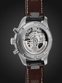- Movement - Swiss-made calibre 69385 automatic chronograph movement with 46-hour power reserve - 33 jewels, 28,800 Vph Functions - Hour and minute hands, seconds subdial - Day and date windows - Chronograph: sweep second hand, 30-minute and 12-hour subdials Dial - Green dial - Luminescent white hands, Arabic numerals and indices Case - Stainless steel case - Soft-iron inner case for protection against magnetic fields - Crown for day, date and time adjustments and manual winding - Sapphire glass crystal - Exhibition case back - Ardillon buckle-fastening brown leather quick-change strap (Calf) Specifications - Case diameter: 41mm - Water resistance: 10 bar - Comes in a presentation box - Reference number: IW388103