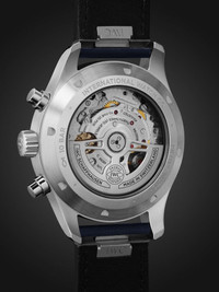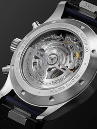 IWC SCHAFFHAUSEN calls its 'Pilot's' chronograph "the epitome of a versatile sports watch". Inspired by easy-to-read cockpit instruments, this stainless steel reference is powered by an in-house calibre 69385 automatic movement and has a high-contrast dial that's detailed with luminescent numerals and a trio of precise counters. It's fitted on a navy leather strap and features the label's EasX-CHANGE® system, so you can easily swap it without any additional tools. We offer an eight-year warranty for all working parts and manufacturing faults for IWC SCHAFFHAUSEN watches. For more information, contact one of our experts by emailing watches@mrporter.com Details & Care Movement - Swiss-made calibre 69385 automatic chronograph movement with 46-hour power reserve - 33 jewels, 28,800 Vph Functions - Hour, minute and small hacking seconds hands - Date and day windows - Chronograph: 60-second, 30-minute and 12-hour counters Dial - Navy dial - Rhodium-plated hands, luminous white Arabic numerals, indices and markers Case - Stainless steel case - Crown for date and time adjustments and manual winding - Sapphire glass crystal - Exhibition case back - Pin buckle-fastening navy leather strap (Calf) Specifications - Case diameter: 43mm; case thickness: 14.8mm; strap width: 21mm - Water resistance: 10 bar - Comes in a presentation box - Reference number: IWIW378003