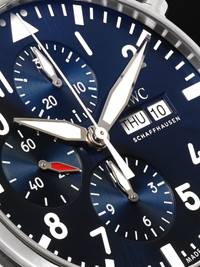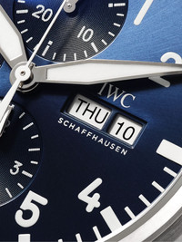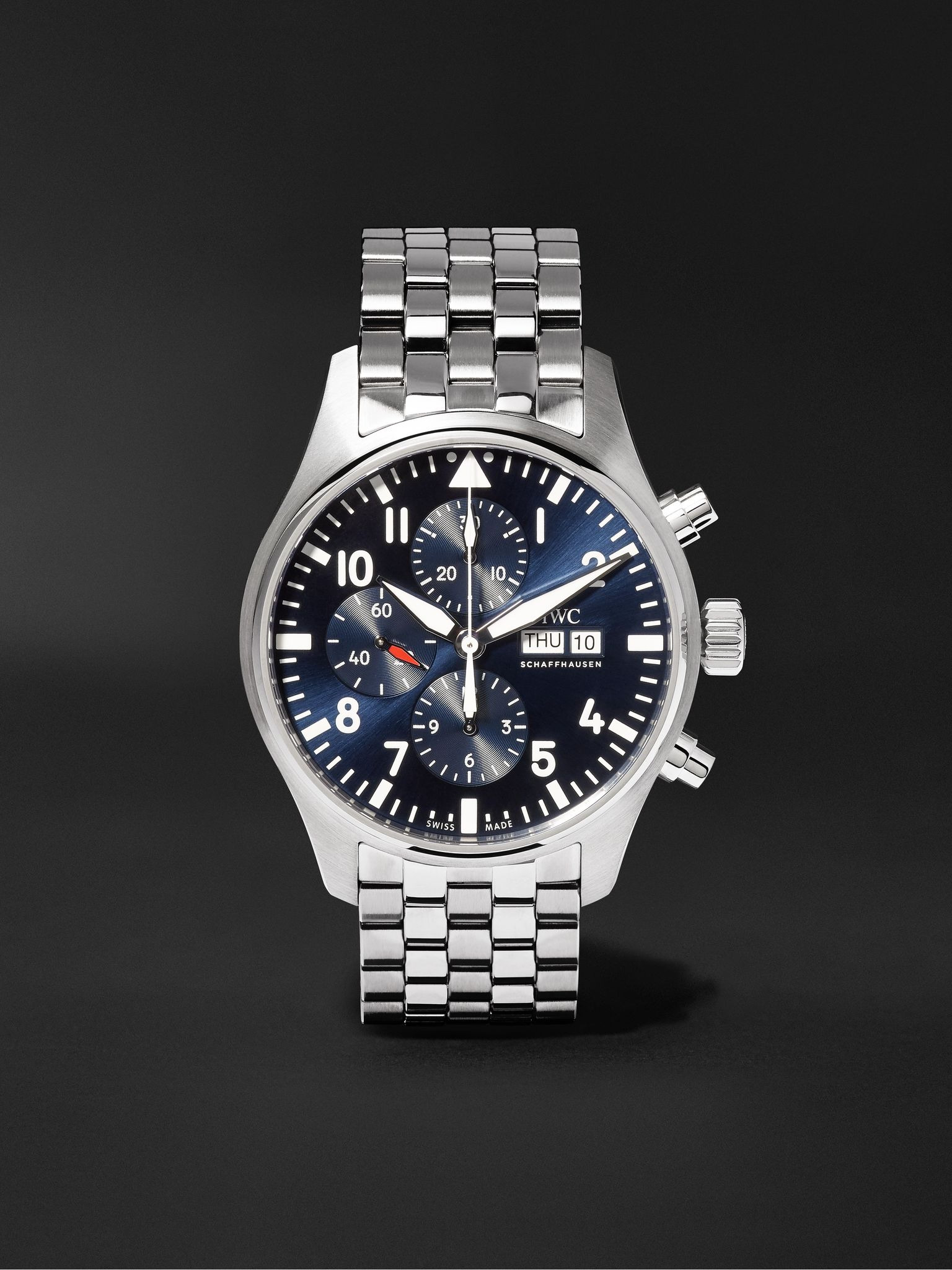 Established in 1868, IWC SCHAFFHAUSEN continues to combine its American founder’s principle of cutting-edge engineering and industrial manufacturing with fine Swiss watchmaking methods. Paying homage to renowned French pilot and poet Mr Antoine de Saint-Exupery – best known for the 1943 literary classic The Little Prince – this blue-dialled special edition boasts precision stopwatch mechanics and a soft-iron interior that protects against external magnetic field interference. The engraved back depicts the titular hero standing proudly with his coat and sword. We offer an eight-year warranty for all working parts and manufacturing faults for IWC SCHAFFHAUSEN watches. For more information, contact one of our experts by emailing watches@mrporter.com Details & Care Movement - Swiss-made calibre 79320 automatic chronograph movement with self-winding 44-hour reserve - 25 jewels, 28,800 Vph Functions - Hour and minute hands, second subdial - Day and date window - Chronograph: sweep second hand, 30-minute and 12-hour subdials Dial - Blue dial - White luminescent hands and indices Case - Stainless steel case - Soft-iron inner case for protection against magnetic fields - Crown for day, date and time adjustments and manual winding - Sapphire glass crystal - Engraved case back - Folding clasp-fastening stainless steel bracelet Specifications - Case diameter: 43mm; case thickness: 15.4mm; lug width: 21mm - Water resistance: 6 bar - Comes in a presentation box - Reference number: IW377717