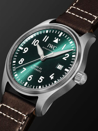 IWC SCHAFFHAUSEN's watch is a refined, minimal take on the legendary 'Mark 11' reference, designed in 1948 to meet the needs of British Royal Air Force navigators and pilots. Brought to life by a calibre 32111 automatic movement with an impressive 120-hour power reserve, this model has a high-contrast green dial illuminated by easy-to-read markings and a robust, corrosion-resistant stainless steel case. The anti-reflective sapphire glass crystal is specially secured - so it remains in place through sudden pressure drops - while the EasX-CHANGE® system makes it easy to swap out the leather strap for one of your choosing. We offer an eight-year warranty for all working parts and manufacturing faults for IWC SCHAFFHAUSEN watches. For more information, contact one of our experts by emailing watches@mrporter.com Details & Care Movement - Swiss-made calibre 32111 automatic movement with 120-hour power reserve - 21 jewels, 28,800 Vph Functions - Hour, minute and central hacking seconds hands - Date window Dial - Green dial - Luminous stainless steel hands, white Arabic numerals, indices and markers - Case - Stainless steel case - Crown for date and time adjustments and manual winding - Sapphire glass crystal - Engraved case back - Pin buckle-fastening brown leather strap (Calf) Specifications - Case diameter: 40mm; case thickness: 10.8mm; strap width: 20mm - Water resistance: 10 bar - Comes in a presentation box - Reference number: IW328205