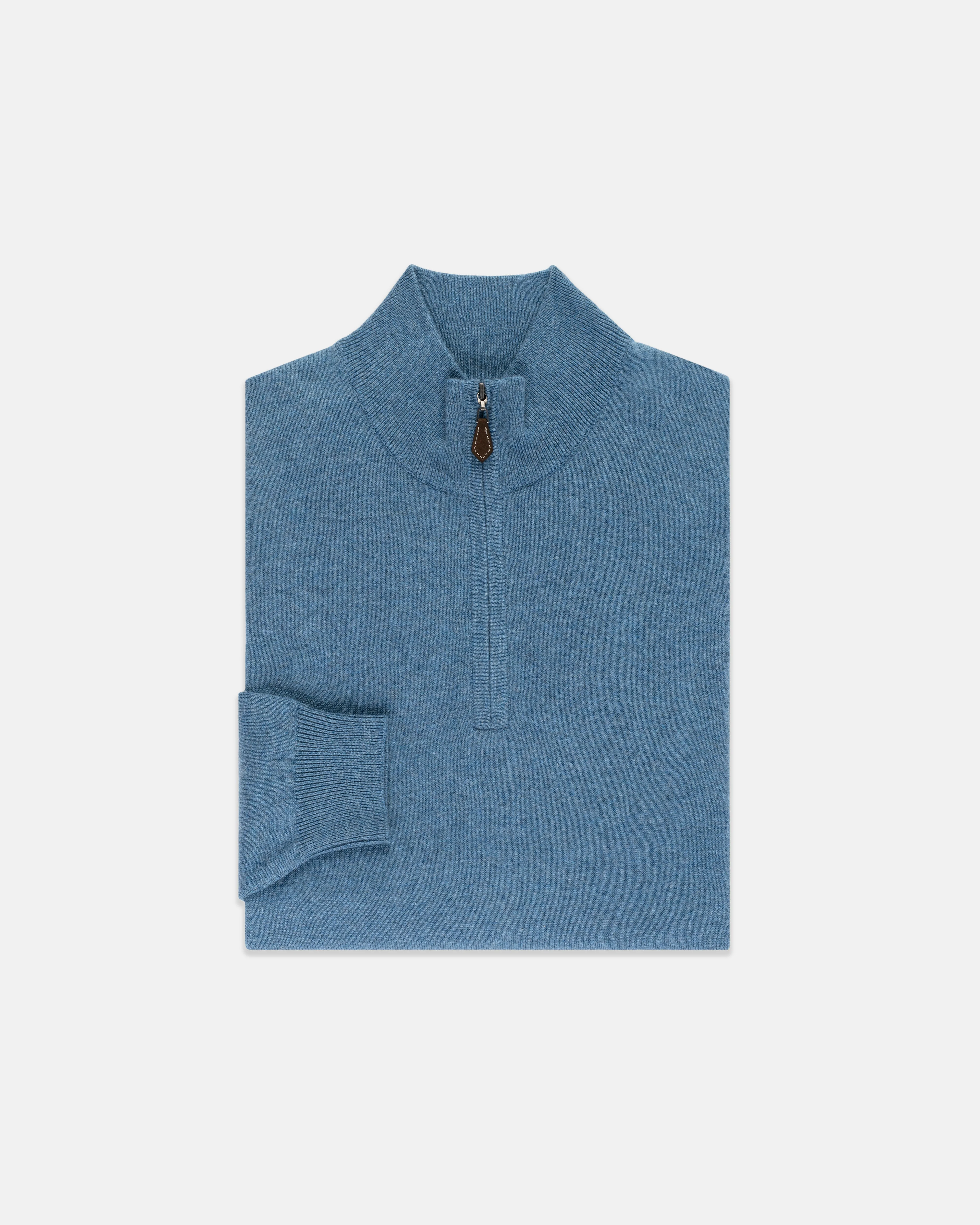 BLUE MARL COTTON-CASHMERE QUARTER-ZIP SWEATER - TRIM FIT