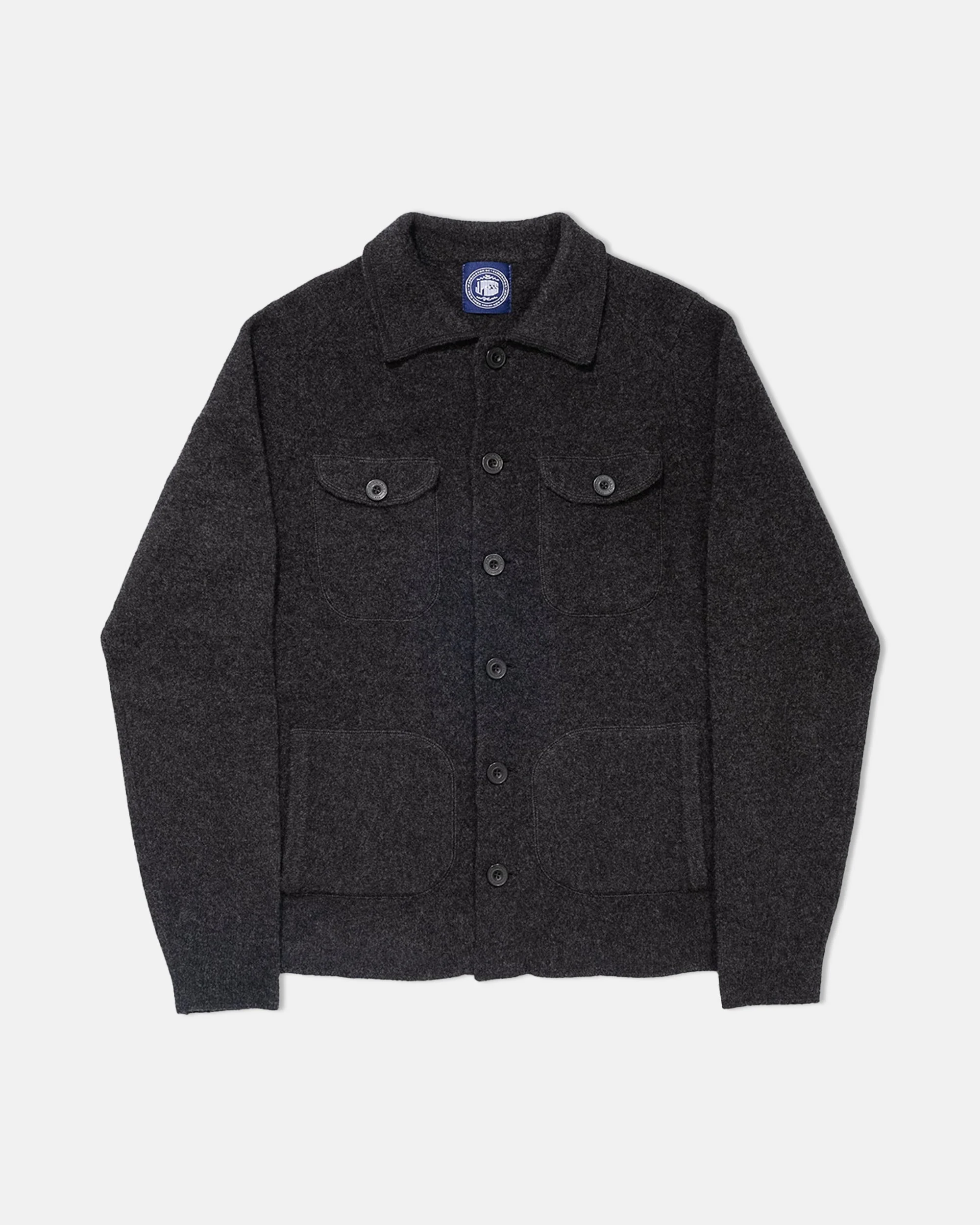 CHARCOAL BOILED WOOL KNITTED SHIRT JACKET