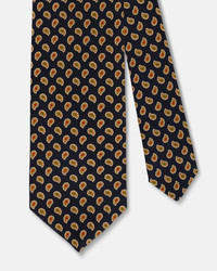 MADE-IN-ENGLAND NAVY TOSSED PINE FOULARD TIE