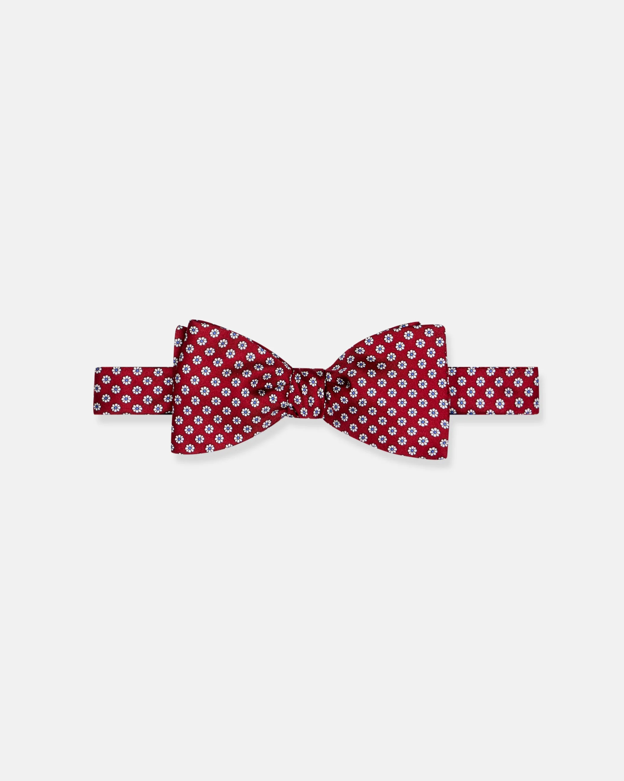 MADE-IN-ENGLAND RED PRINTED FOULARD SILK BOW TIE