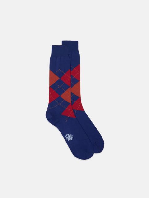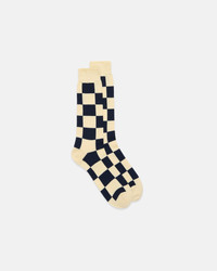 MADE-IN-ITALY NAVY & BUTTER CHECKERBOARD MID-CALF WOOL SOCKS