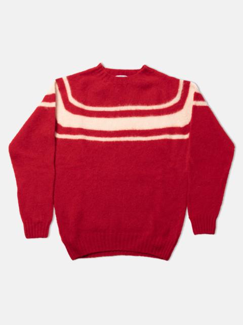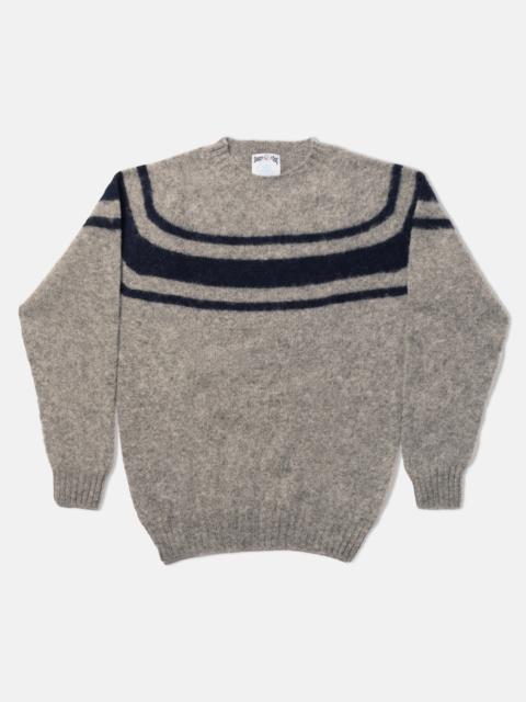 MADE-IN-SCOTLAND NAVY CHEST STRIPE SHAGGY DOG SWEATER - TRIM FIT