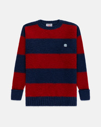 MADE-IN-SCOTLAND NAVY & DARK RED STRIPE SHAGGY DOG ICON SWEATER - CLASSIC FIT