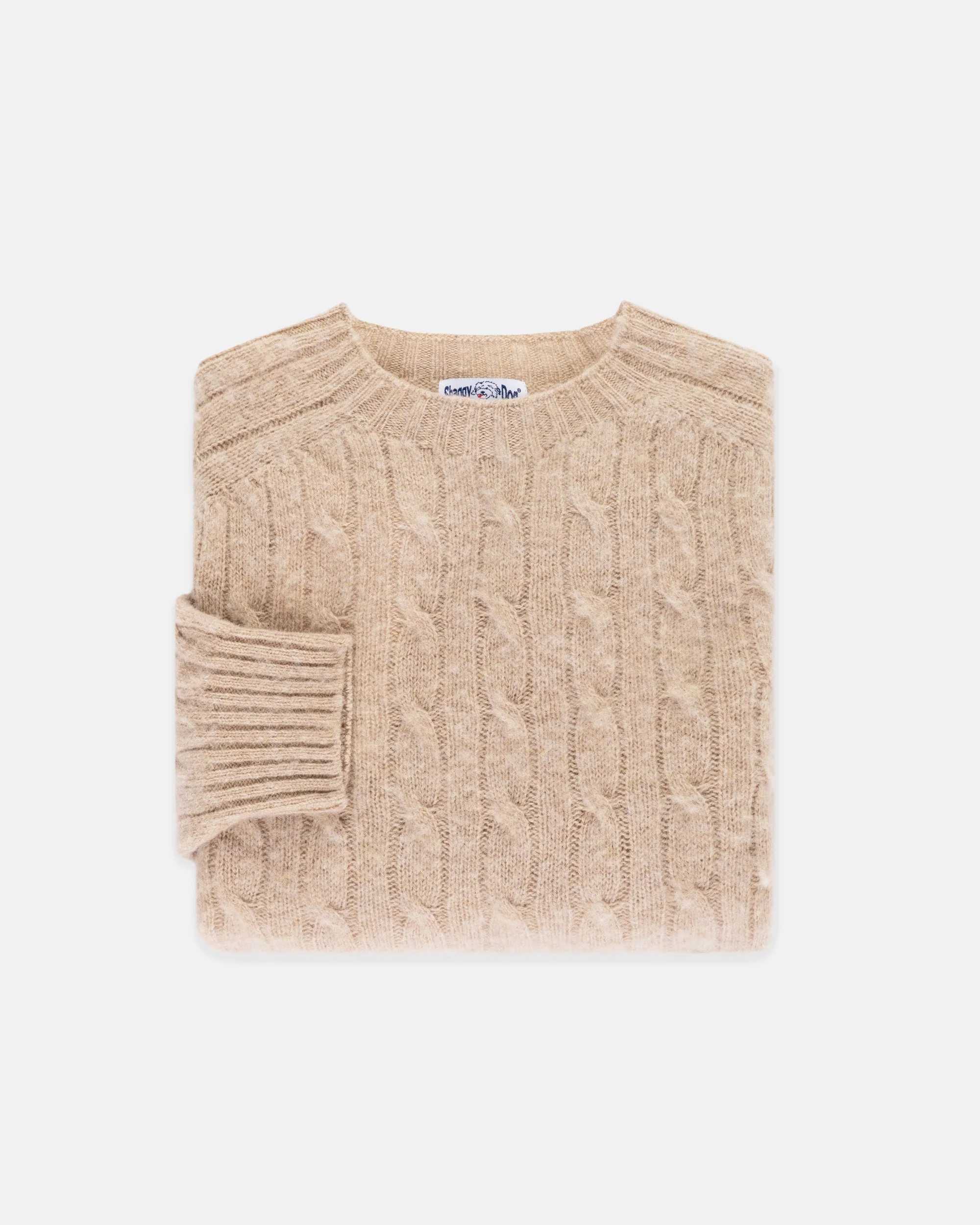 MADE-IN-SCOTLAND OATMEAL SHAGGY DOG CABLEKNIT SWEATER - CLASSIC FIT