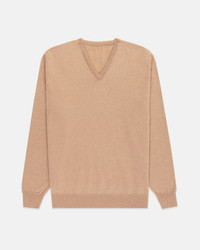 MADE-IN-SCOTLAND TAN CASHMERE V-NECK SWEATER - CLASSIC FIT