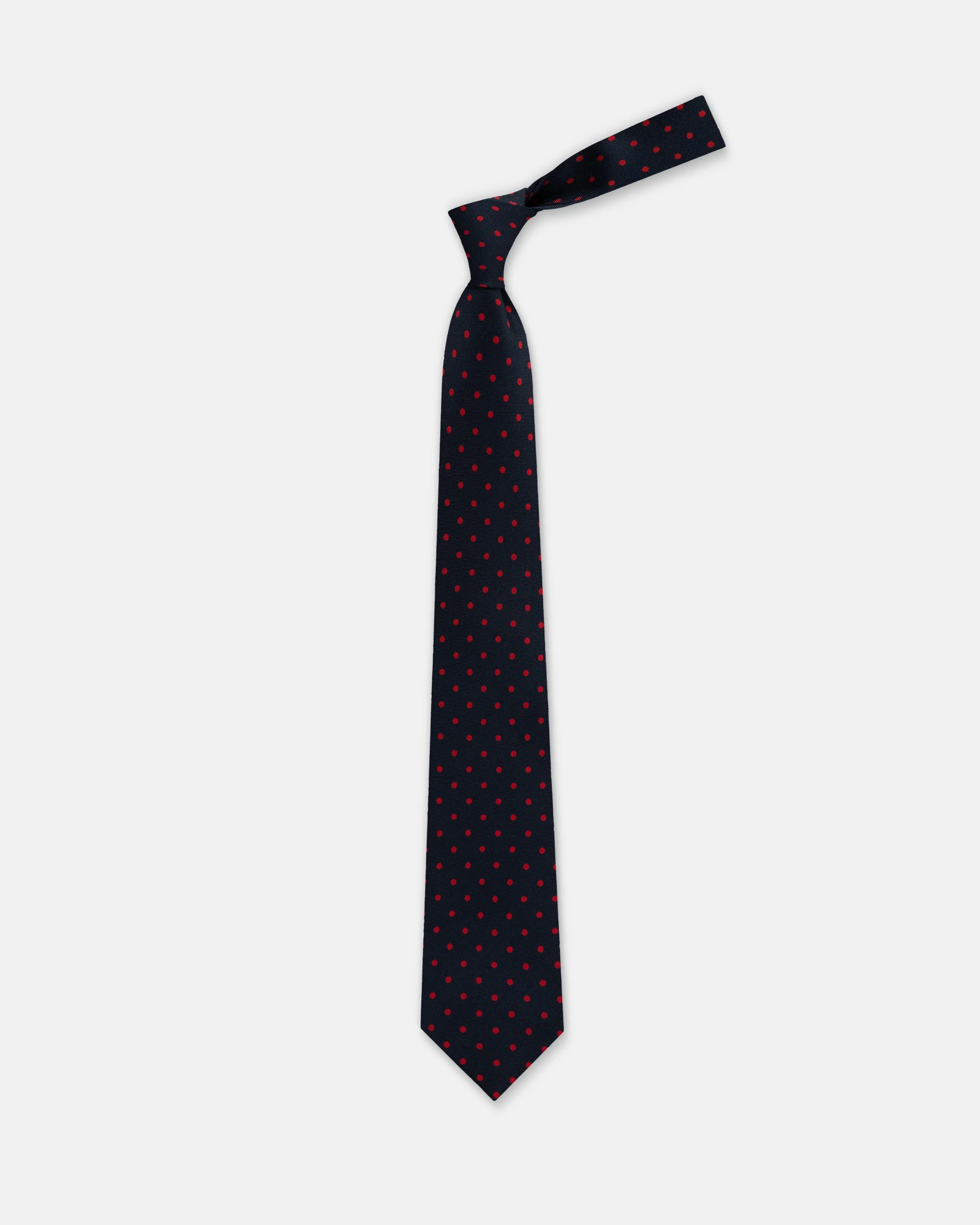 MADE-IN-UK NAVY & RED POLKA DOT SILK FOULARD TIE