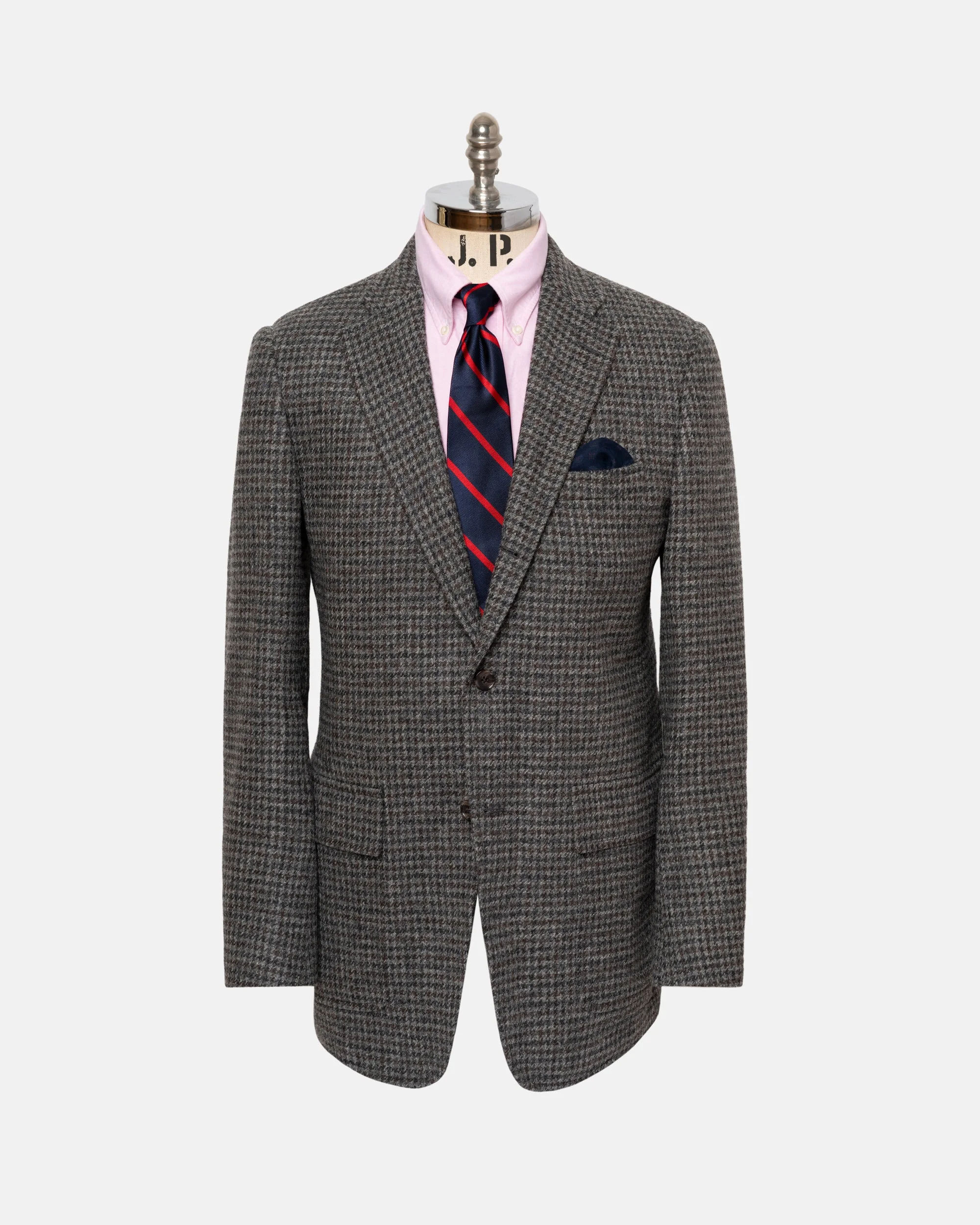 MADE-IN-USA GREY & BROWN HOUNDSTOOTH CHEVIOT TWEED SPORT COAT