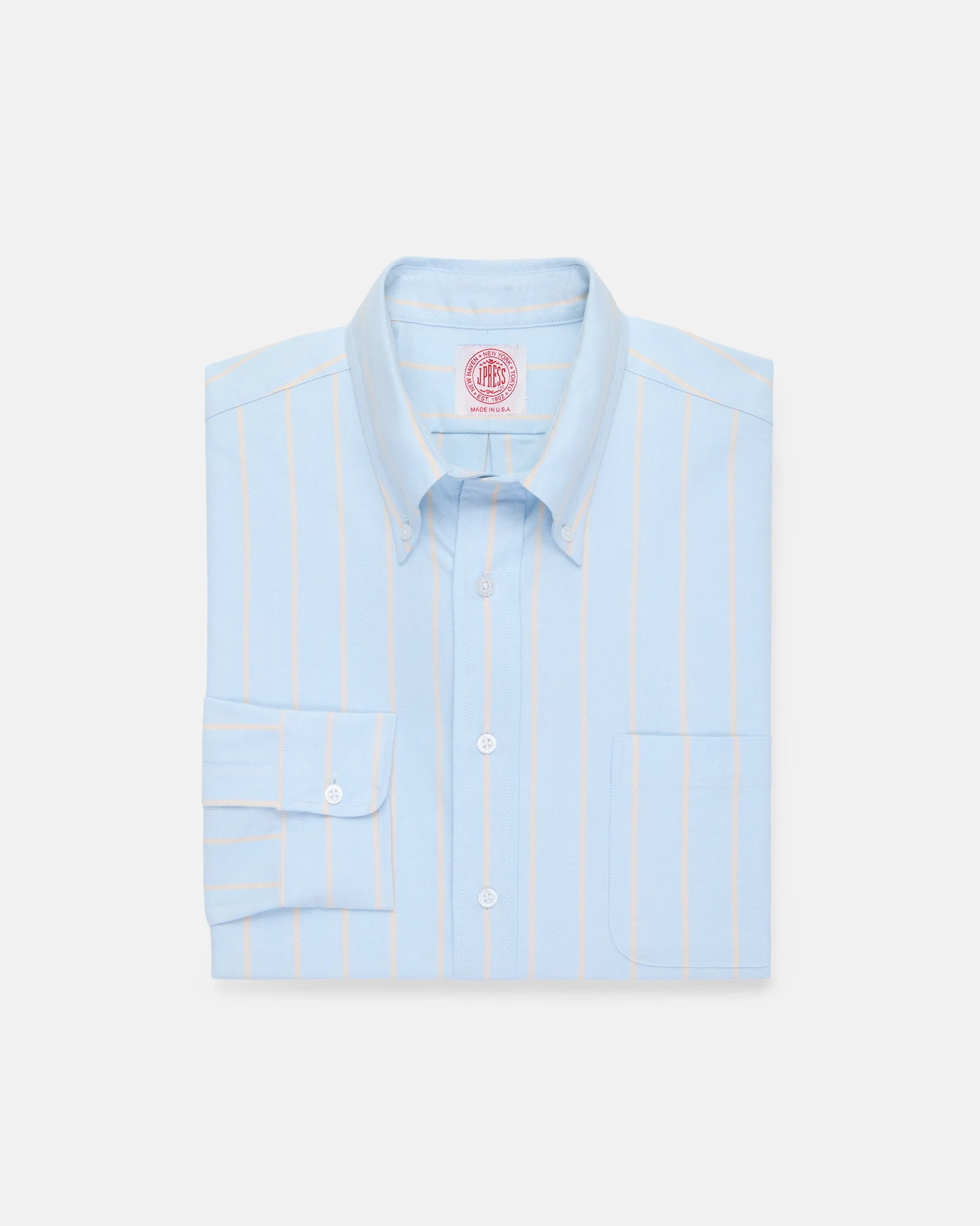 MADE-IN-USA LIGHT BLUE WITH ORANGE STRIPE OXFORD CLOTH SPORT SHIRT - CLASSIC FIT