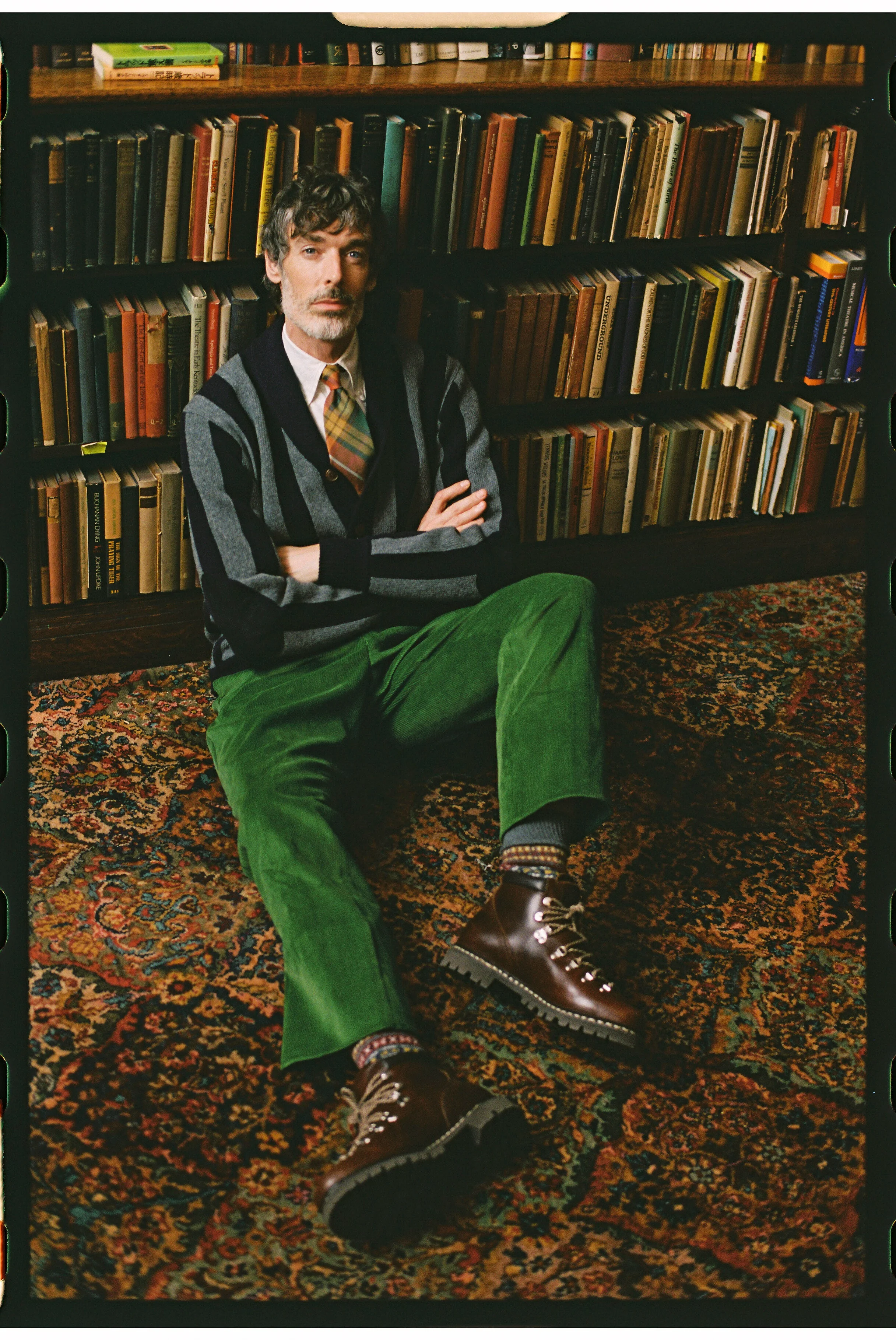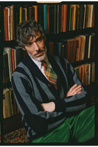 NAVY & GREY STRIPED VARSITY-STYLE COTTON CARDIGAN - TRIM FIT