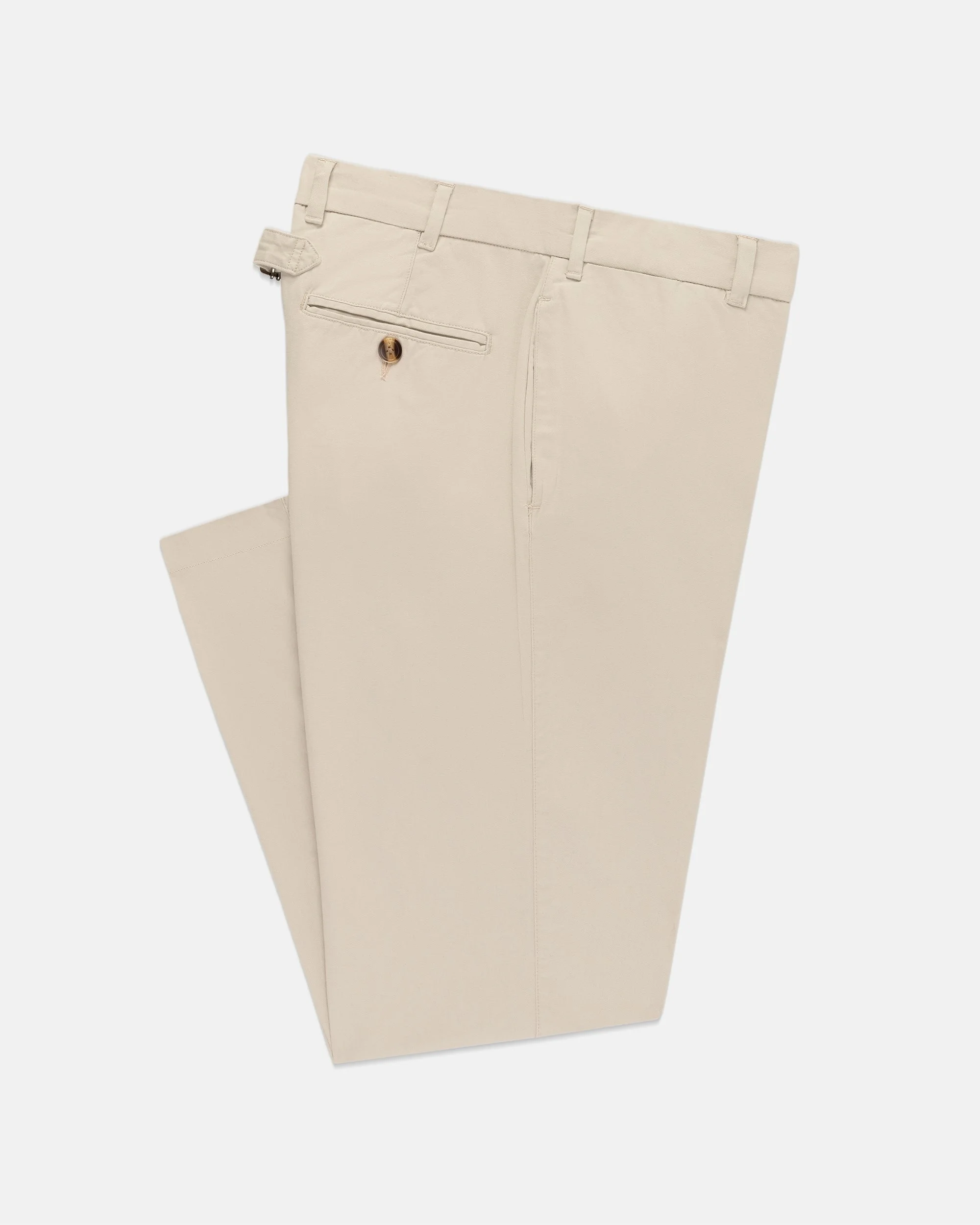 - Trim Fit - 100% Cotton Twill - Cinch Buckle Back - Enzyme Washed - Flat Front - 34" Inseam - Machine Wash - Imported This item is final sale Fit Note: Most find our trousers run small. We recommend sizing up. Please refer to our size chart to find your perfect size