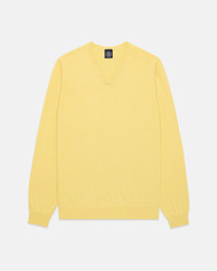 YELLOW COTTON-CASHMERE V-NECK SWEATER - TRIM FIT