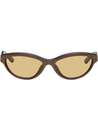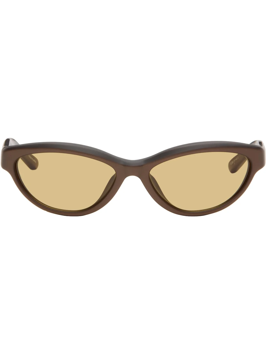Oval acetate-frame sunglasses. · Yellow lenses · 100% UVA/UVB protection · Integrated nose pads · Logo printed at temples · Includes pouch · Size: 57.16 120 Supplier color: Dark brown matt Acetate. Made in Japan 252553M134008