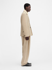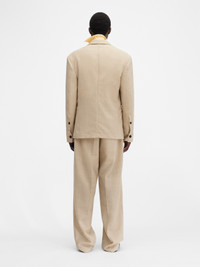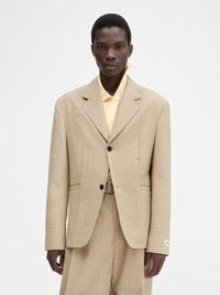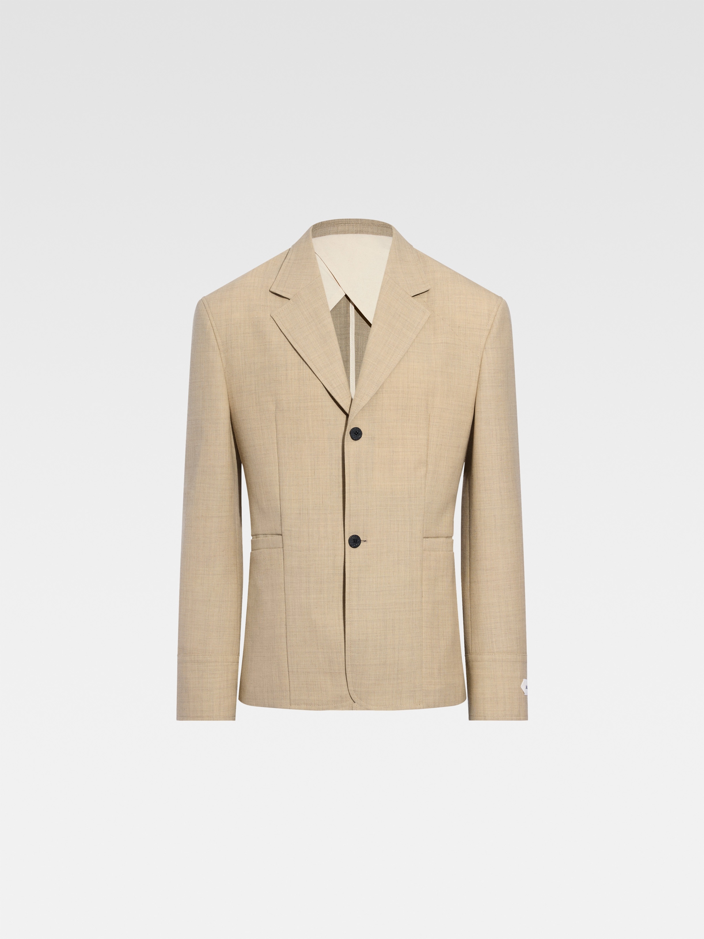 LA CROISIERE Darted suit jacket - Straight boxy fit - Suiting wool fabric - Structured shoulders - Notched lapel - Two-button fastening - Crocodile embossed buttons - Front darts - Welt pockets - Interior welt pocket - Topstitched - Calisson grosgrain patch with logo at bottom of sleeve - Half lined The model is 187cm and wears a size 48 100% Wool / Lining: 52% Viscose - 48% Cotton Made in Romania Ref. 255JA060-1720-150