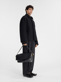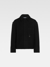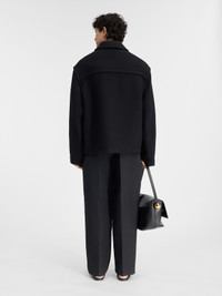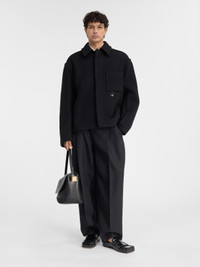 LA CASA Minimal boxy jacket - Boxy fit - Winter wool twill - Workwear collar - Hidden button placket - “J” shaped patch pocket with metal J-Ring - Side-seam pockets - Topstitched seams - J" loop on back - Back yoke - Fully lined The model is 187cm and wears a size 48 100% Virgin wool Made in Portugal Ref. 246CO039-1614-990