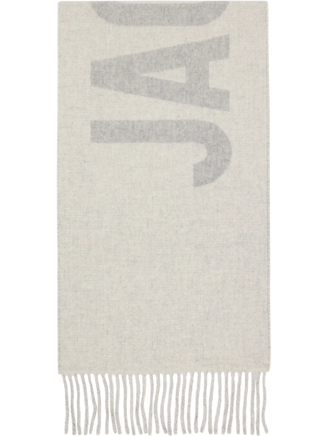 Rectangular wool flannel scarf. · Jacquard logo at face · Fringed detailing at ends · L70.75" x W13.75" Supplier color: Grey 100% wool. Made in Italy 261553M150011