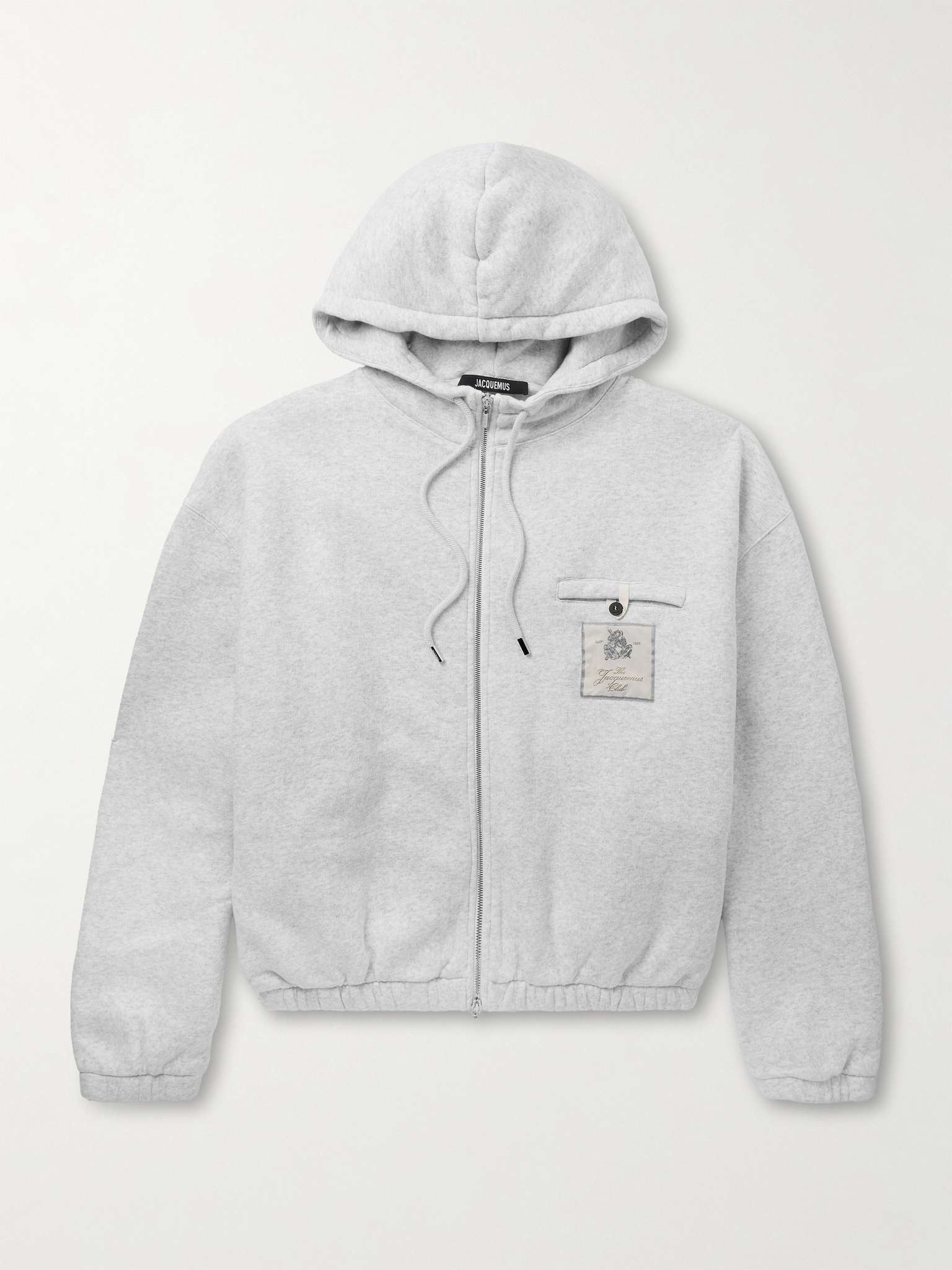 Retro athletic styles inform the relaxed cut and considered details of Jacquemus' 'Torneo' hoodie. It's made from plush cotton-jersey and detailed with a 'J' pocket loop and 'Club' logo patch. Size & Fit - Intended to be oversized; we recommend sizing down if you prefer a closer fit - Mid-weight, non-stretchy fabric - Model is shown wearing a S - Model measures: chest 36"/ 92cm, height 6'2"/ 188cm Details & Care - Light-grey melange cotton-jersey - Two-way zip fastening - 100% cotton - Dry clean