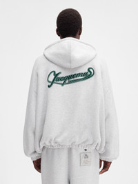 LA CROISIERE Jacquemus Club logo zipped hoodie - Relaxed fit - Mottled cotton fleece - Drawstring hood with engraved circle and square metal tips - Welt pocket with "J" loop and button - Jacquemus Club logo label on chest - Double-sided zip - Side-seam pockets - Elasticated cuffs and hem - Contrast textured logo patch embroidered on back - Fully lined The model is 187cm and wears a size L 100% Cotton / Lining: 100% Cotton Made in Portugal Ref. HOM00302AJ001939CM