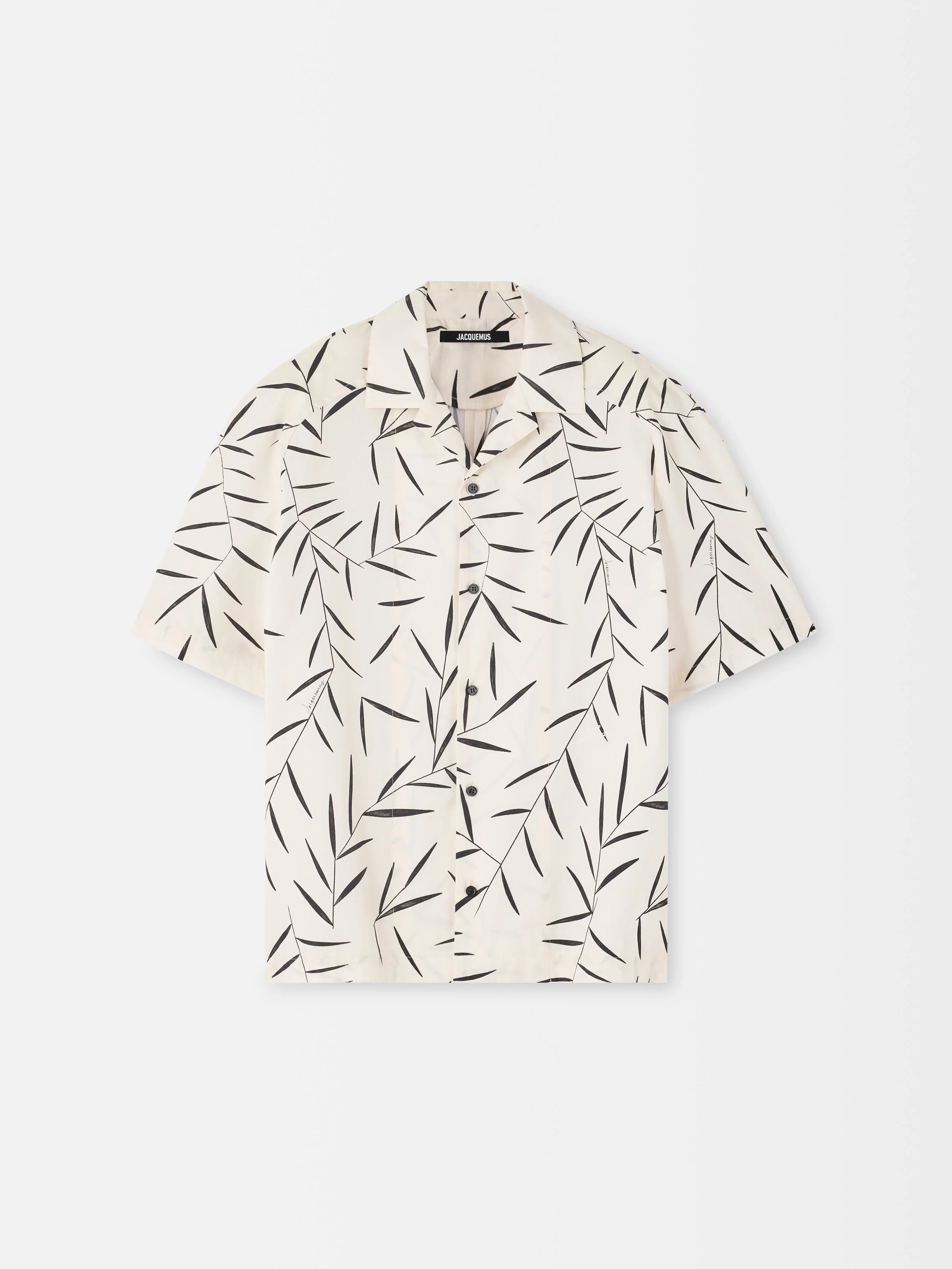 Foliage print bowling shirt - Relaxed fit - Cotton poplin with Foliage print - Camp collar - Boxy elbow-length raglan sleeves - Embroidered 50’s logo on the sleeve - Back yoke with "J" loop - Mother-of-pearl buttons The model is 187cm and wears a size 48 100% Cotton Made in France Ref. SHM00535AW002081KL