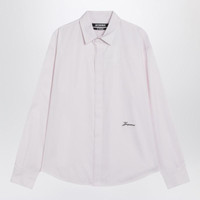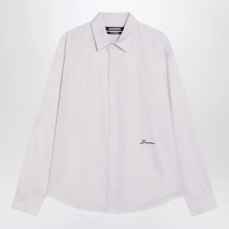 Jacquemus shirt in light pink cotton, featuring concealed button front closure, long sleeves with buttoned cuffs, classic collar, contrasting logo lettering embroidery at the front, fabric J detail at the back, and curved hem. Gender: Men Material: 100% Cotton Color: PINK Made in: Portugal Product ID: 25HSHM00541AW00539/R_JACQM-410 *Import tax/duty will be calculated at checkout (If applicable)