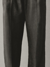 Elastic-waist pants - Medium-high rise - Straight leg - Zip fly with flap and button - Slant pockets - Belt loops including "J" loop - Pressed pleats - Elasticated waistband on the back - Back welt pocket with "J" button loop The model is 189cm and wears a size 48 100% Linen / Lining: 100% Cotton Made in Bulgaria Ref. PAM00131AW00810970