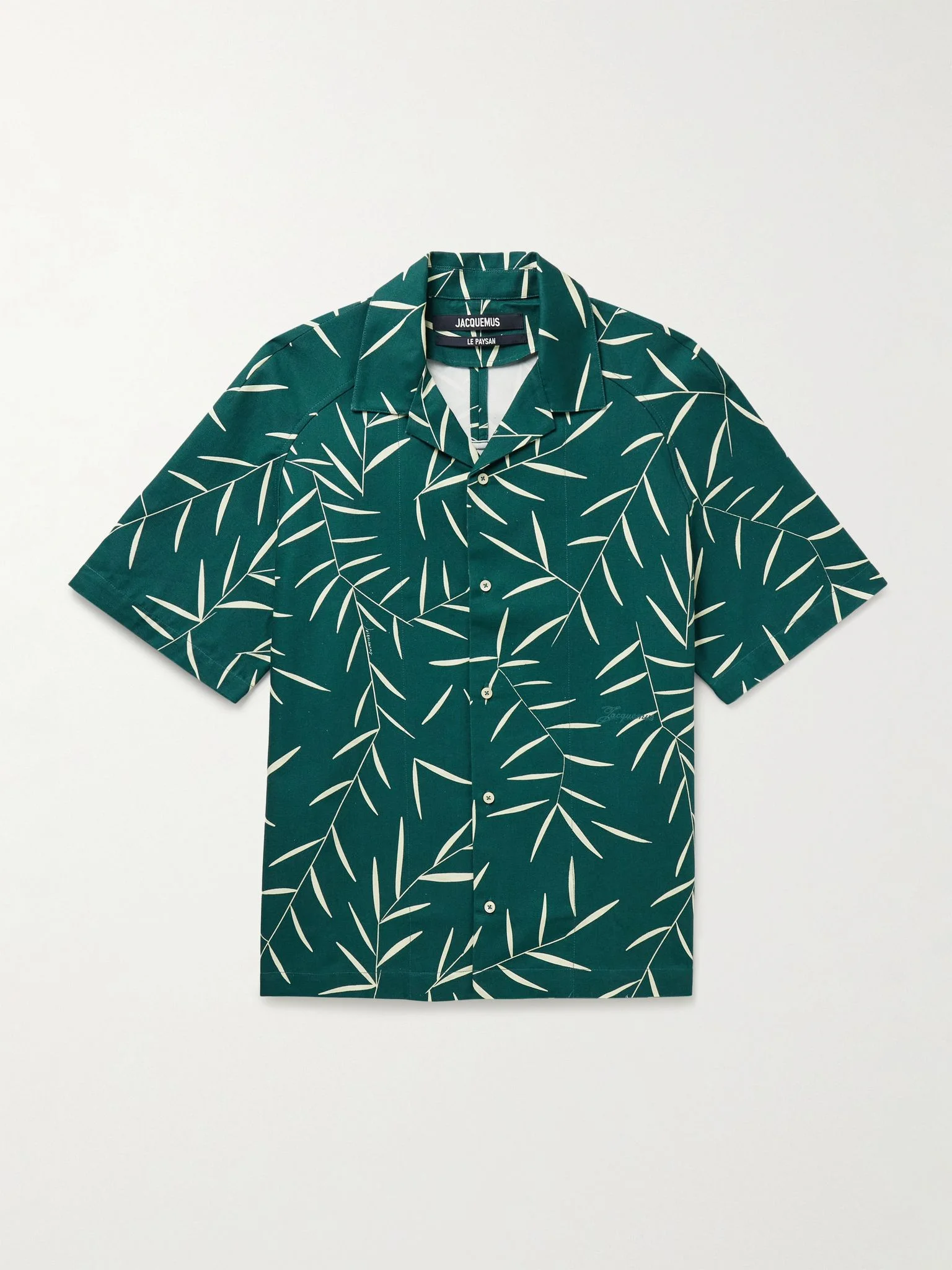 Jacquemus' 'Fonccio' shirt is perfect for balmy days. It's cut from cotton-twill printed with foliage and has a boxy profile with a camp collar. Size & Fit - Fits true to size. Take your normal size - Take the next size down if you wish to achieve a closer fit - Designed for a boxy fit - Mid-weight, non-stretchy fabric - Model is shown wearing an IT 48 - Model measures: chest 38"/ 96cm, height 6'1"/ 185cm Details & Care - Emerald and light-green cotton-twill - Button fastenings - 100% cotton - Shell: Vietnam