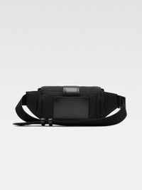LA CASA Flap bum bag - Nylon fanny-pack - Smooth leather details - Magnetic flap tab closure - Back patch pocket - Metal logo - Adjustable buckled belt - Interior card slot - Matt black metal hardware - Worn around the waist - Height: 14 cm - Length: 22 cm - Width: 8 cm - Max drop: 93cm 100% Polyamide / Lining: 100% Cotton Made in Italy Ref.246BA379-3174-990