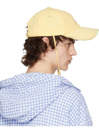 Cotton twill cap in yellow. · Embroidered eyelets at crown · Logo hardware at face · Distressed edge at curved brim · Cord-lock chin strap · Cinch fastening · Logo-engraved silver-tone hardware Supplier color: Pale yellow 100% cotton. Made in Bulgaria 251553M139002