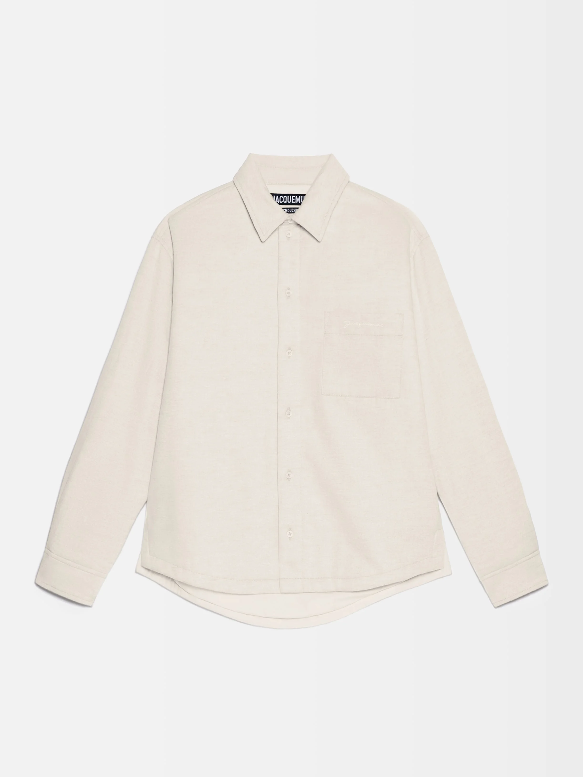 Les Classiques Puffed overshirt - Boxy fit - Cotton linen - Pointed collar - Chest pocket with embroidered logo - Classic button tab and buttoned cuffs - Fully padded and lined The model is 185 cm and wears a size 48. 55% Cotton - 45% Linen Made in TN Ref. 236SH105-1033-130