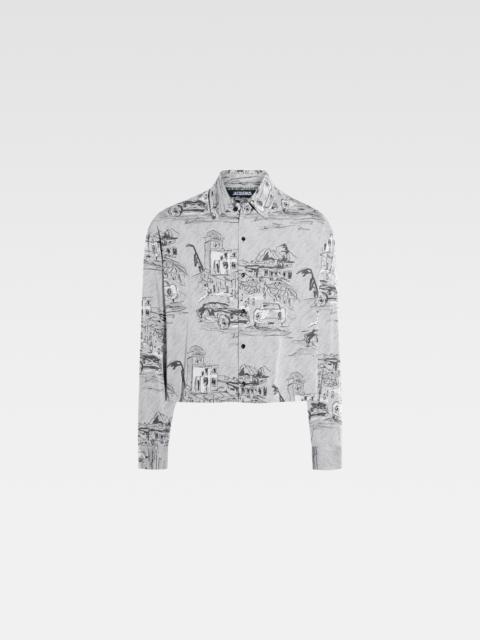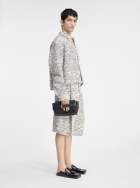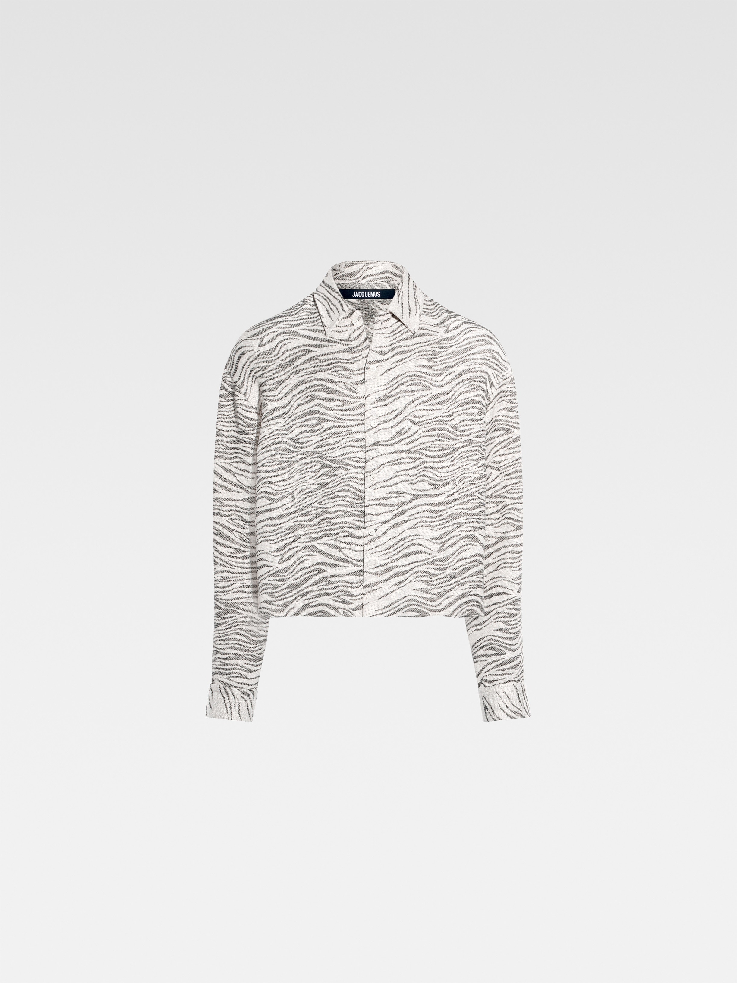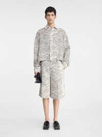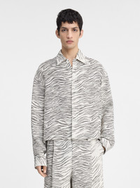 LA CASA Zebra printed jacquard boxy shirt - Short, boxy fit - Zebra printed jacquard - Pointed collar - Extra long sleeves - Square, buttoned cuffs and hem - “J” locker loop - Mother-of-pearl buttons The model is 189cm and wears a size 48 60% Viscose - 21% Silk - 19% Cotton Made in Portugal Ref. 246SH084-1689-9BO