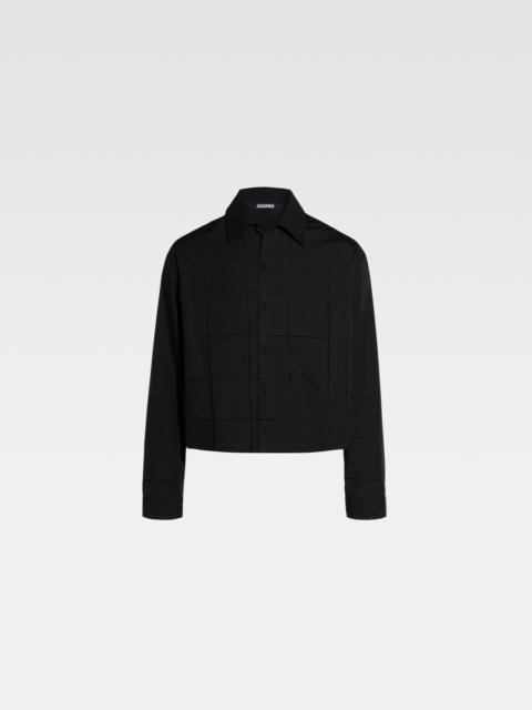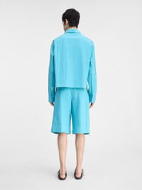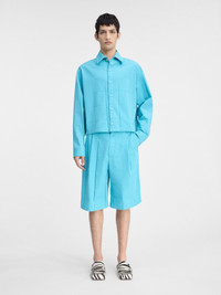 LA CASA Square panel shirt - Short, boxy fit - Cotton canvas and technical polyester - Pointed collar - Square panel construction - Extra long sleeves - Square, buttoned cuffs and hem - “J” locker loop - Mother-of-pearl buttons The model is 189cm and wears a size 48 65% Polyester - 35% Cotton Made in Portugal Ref. 246SH096-1671-340