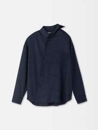 Asymmetric shirt - Asymmetric oversized fit - Wool flannel - Asymmetric pointed collar - Asymmetric button placket - Long sleeves - Buttoned cuffs - Asymmetric "J" shaped chest pocket - Embroidered logo on the front - “J" loop in the back - Back yoke - Horn buttons The model is 190cm and wears a size 48 100% Virgin Wool Made in France Ref. SHM00537AW00631380