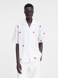 LA CASA Lab Check Red Jacquard bowling shirt - Relaxed fit - Lab Check Red cotton jacquard - Camp collar - Boxy elbow-length sleeves - Embroidered logo - Back yoke with “J” locker loop - Mother-of-pearl buttons The model is 188cm and wears a size 48 100% Cotton Made in Portugal Ref. 246SH202-1695-4BX